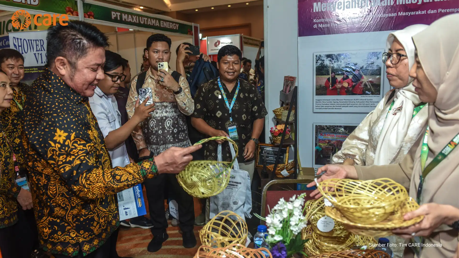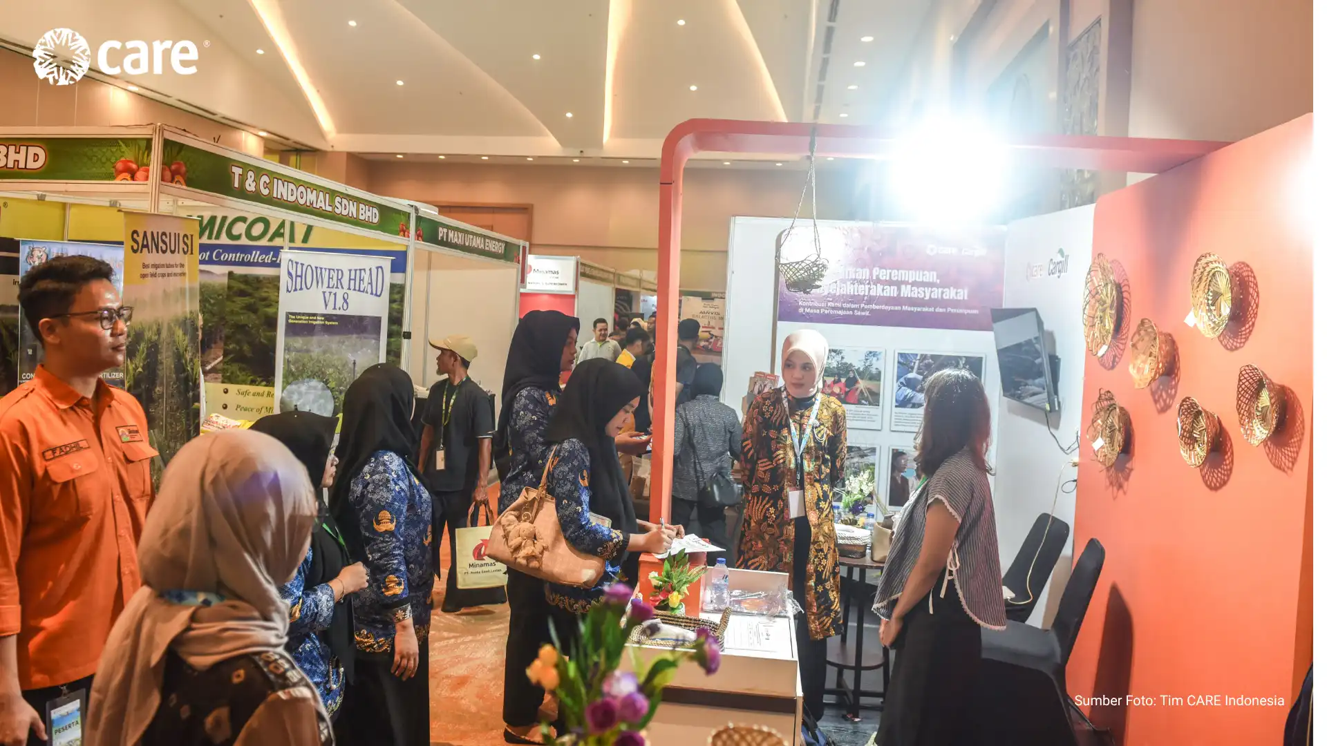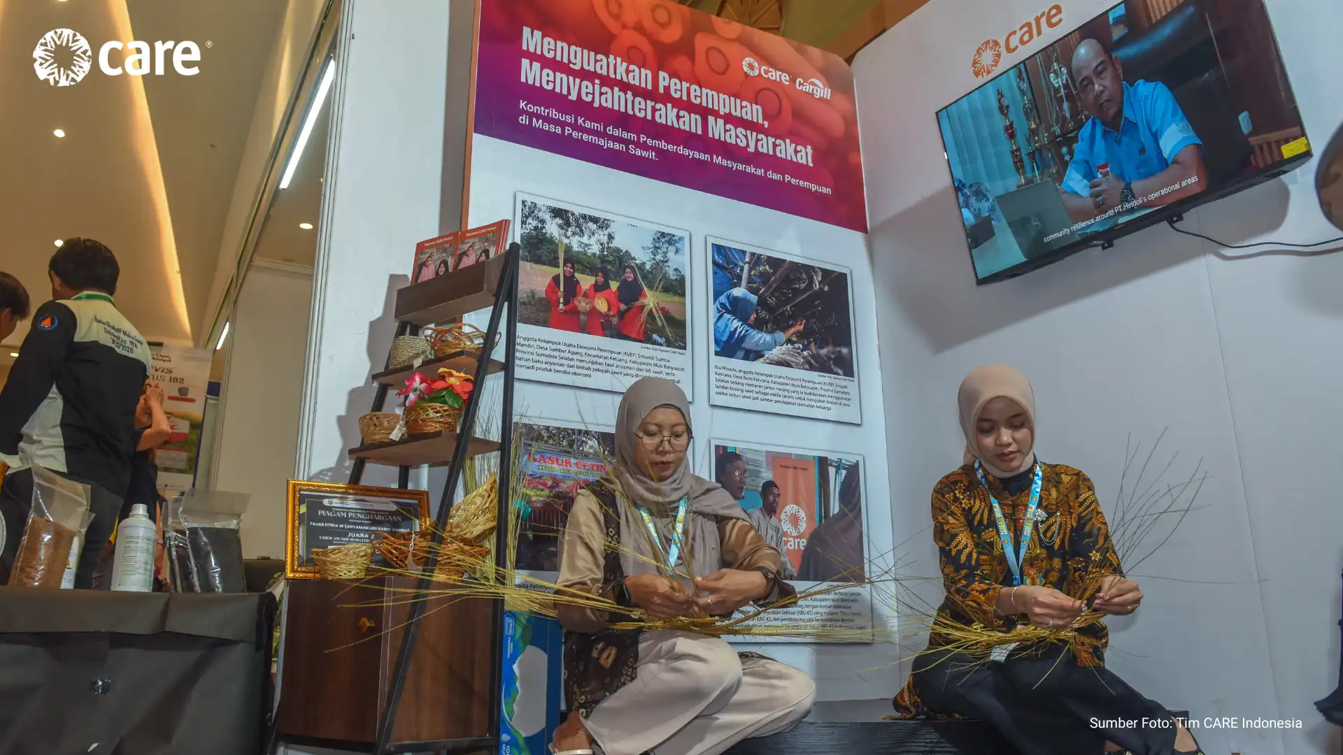 CARE Indonesia, supported by its partner PT Hindoli – Cargill, participated in a series of seminars and exhibitions at the Andalas Forum held at Aryaduta Convention Hall Hotel, Palembang (16–17/04). The booth, which showcased the positive impact of community empowerment efforts, including women’s empowerment, across 13 villages surrounding oil palm plantation areas in Musi Banyuasin District, was well received by forum visitors.