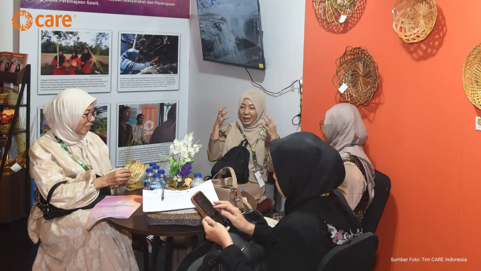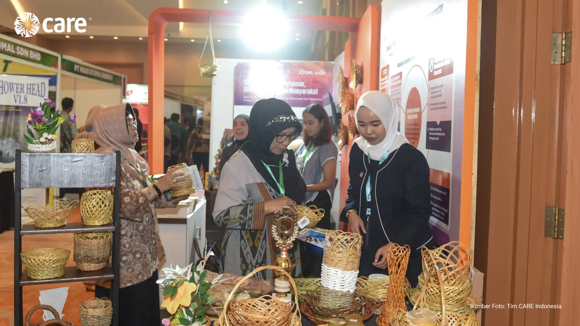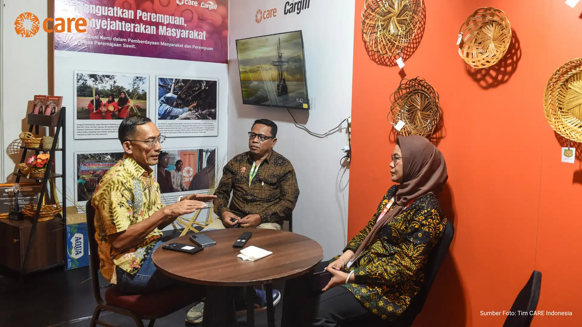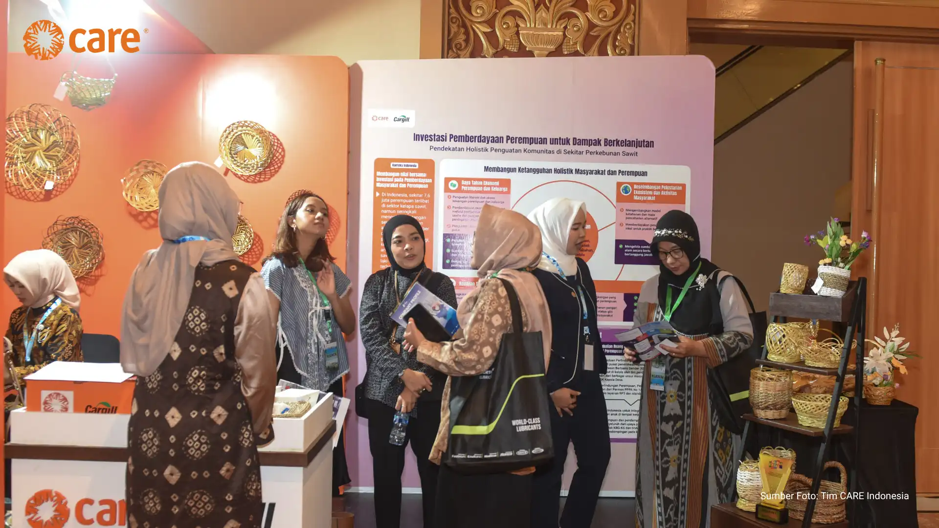 CARE Indonesia, supported by its partner PT Hindoli – Cargill, participated in a series of seminars and exhibitions at the Andalas Forum held at Aryaduta Convention Hall Hotel, Palembang (16–17/04). The booth, which showcased the positive impact of community empowerment efforts, including women’s empowerment, across 13 villages surrounding oil palm plantation areas in Musi Banyuasin District, was well received by forum visitors.